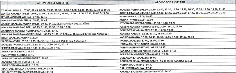 Κυριακή 30.01.22 θα πραγματοποιηθούν τα εξής δρομολόγια