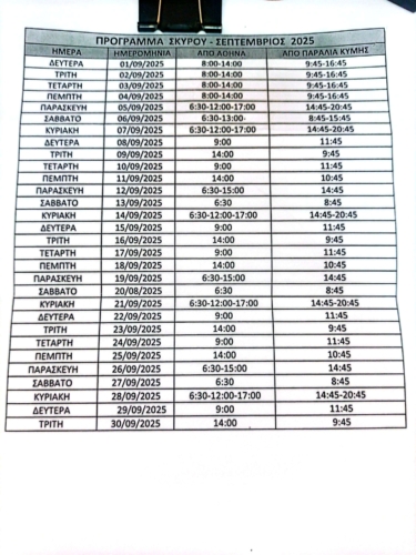 Χαλκιδα-Κύμη 12:15, 15:15, 18:15